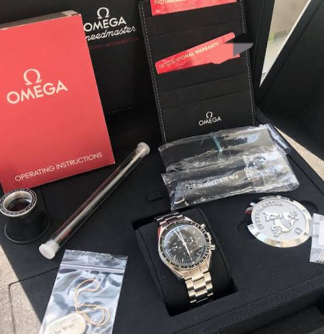 | Included | Large Omega Moonwatch Presentation Watch Box, Tool, Loupe, Medallion, x02 Omega Straps, expired Intl Warranty Certificate from Q3 2020, Instruction Manual and Docket Folder (Complete Set) Even comes with the factory plastic box and hangtag. |